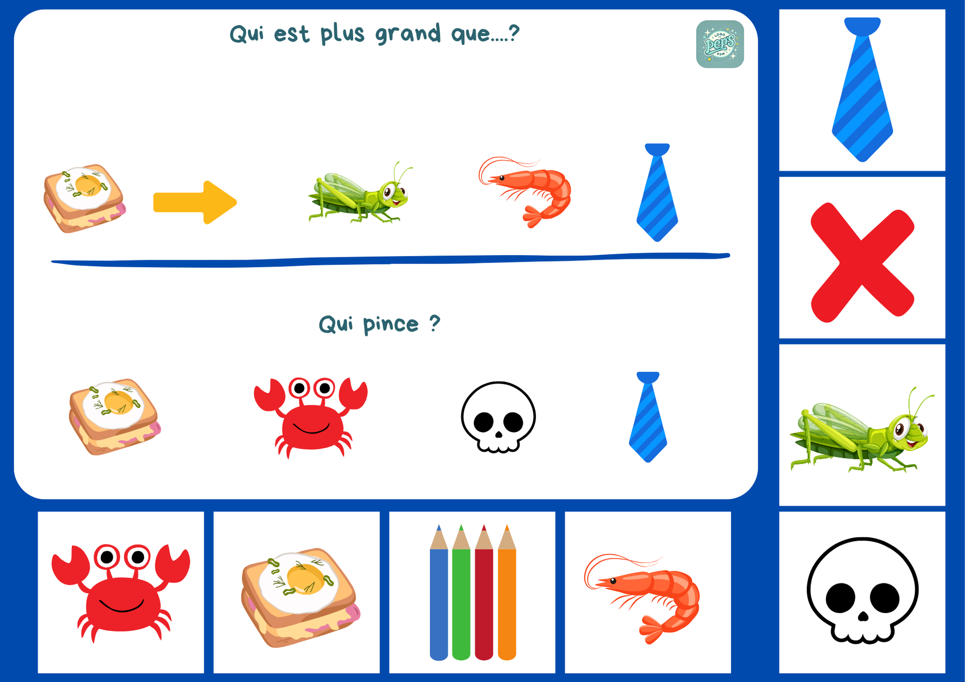• Repérage spatial (gauche, droite, en dessous…)