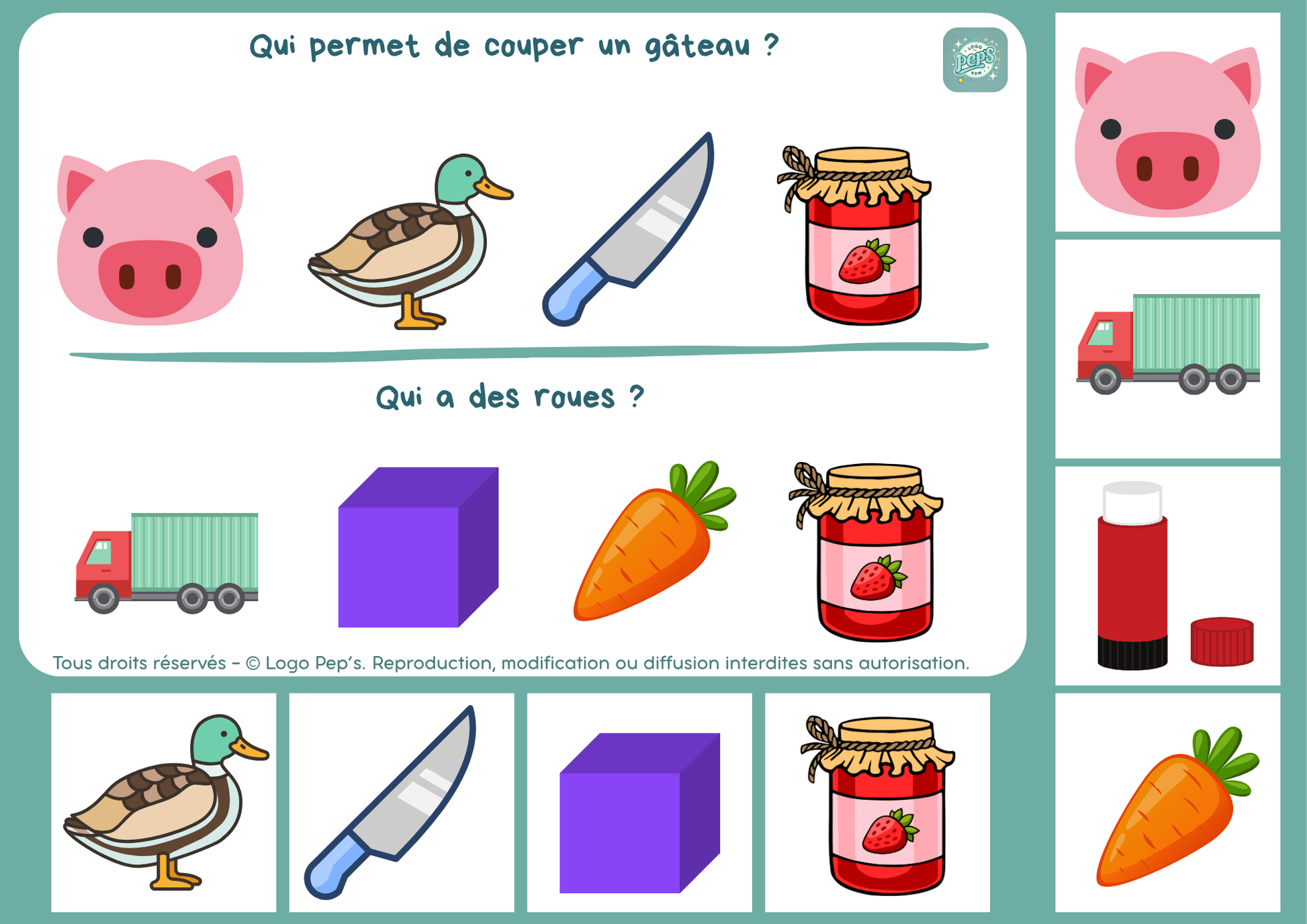 Permettre une répétition régulière et fonctionnelle du phonème /c/ en position initiale de mot, à travers des activités qui sollicitent :