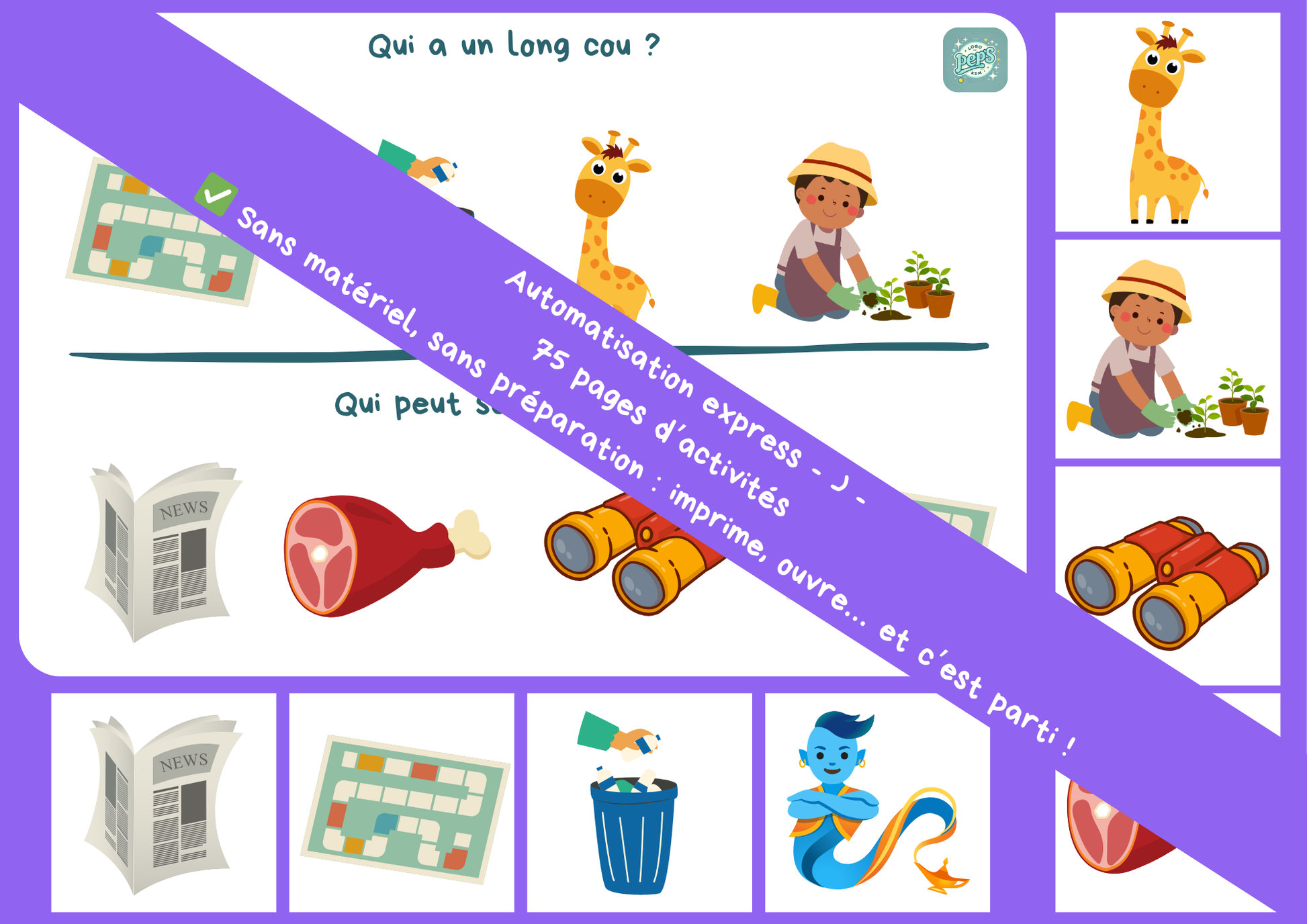 Chaque page encourage la parole spontanée et le réemploi du phonème dans des situations simples et accessibles.