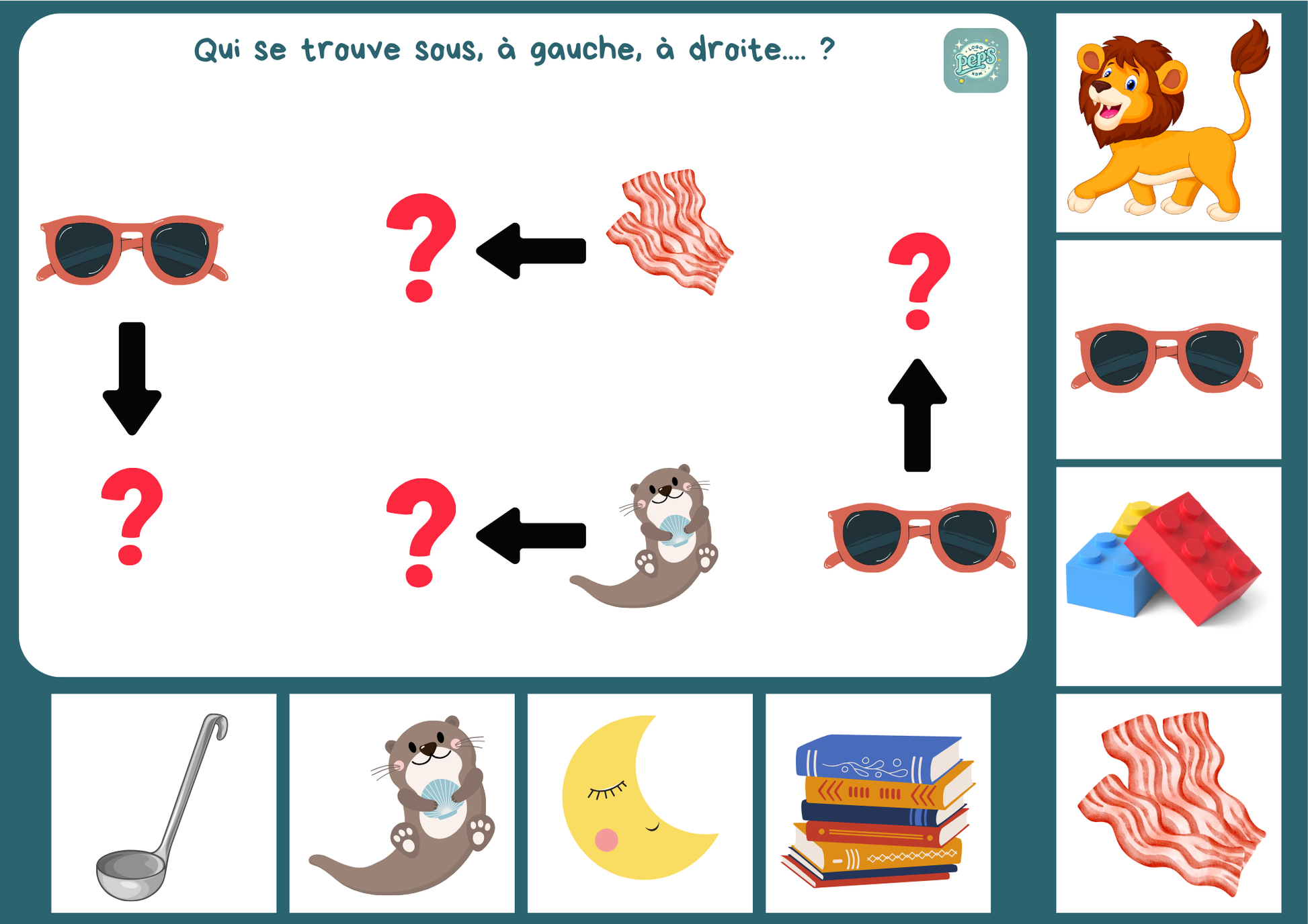 • Repérage spatial (gauche, droite, en dessous…)