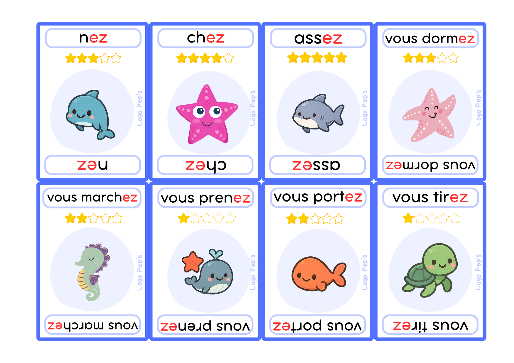 Bataille d’Étoiles – Son “É” (é / er / ez) – Jeu de 50 cartes