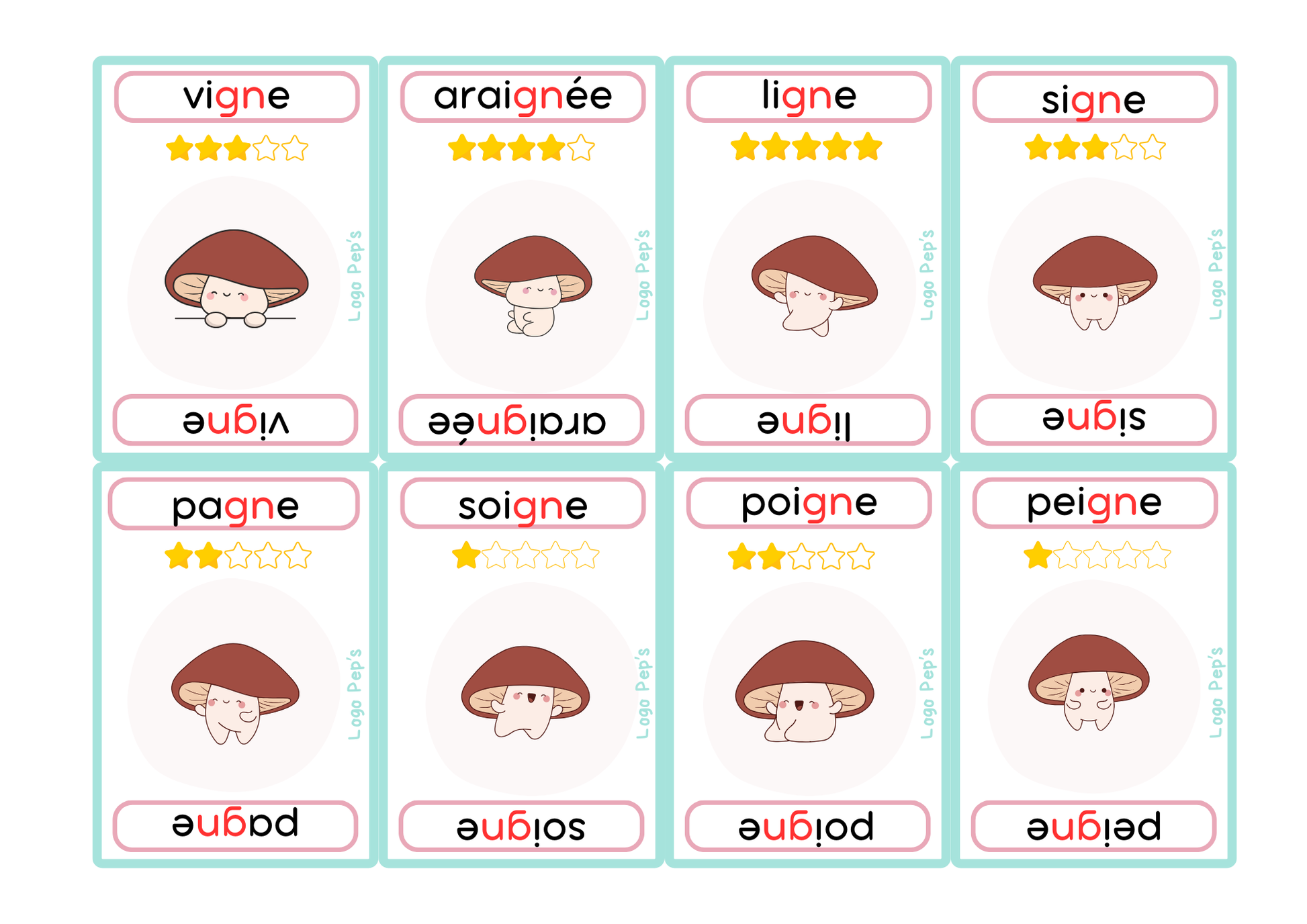 Avec cette bataille de 50 cartes, les enfants lisent, comparent et renforcent progressivement la lecture de mots contenant le son GN (ex : campagne, montagne, oignon, gagner, baignoire…).