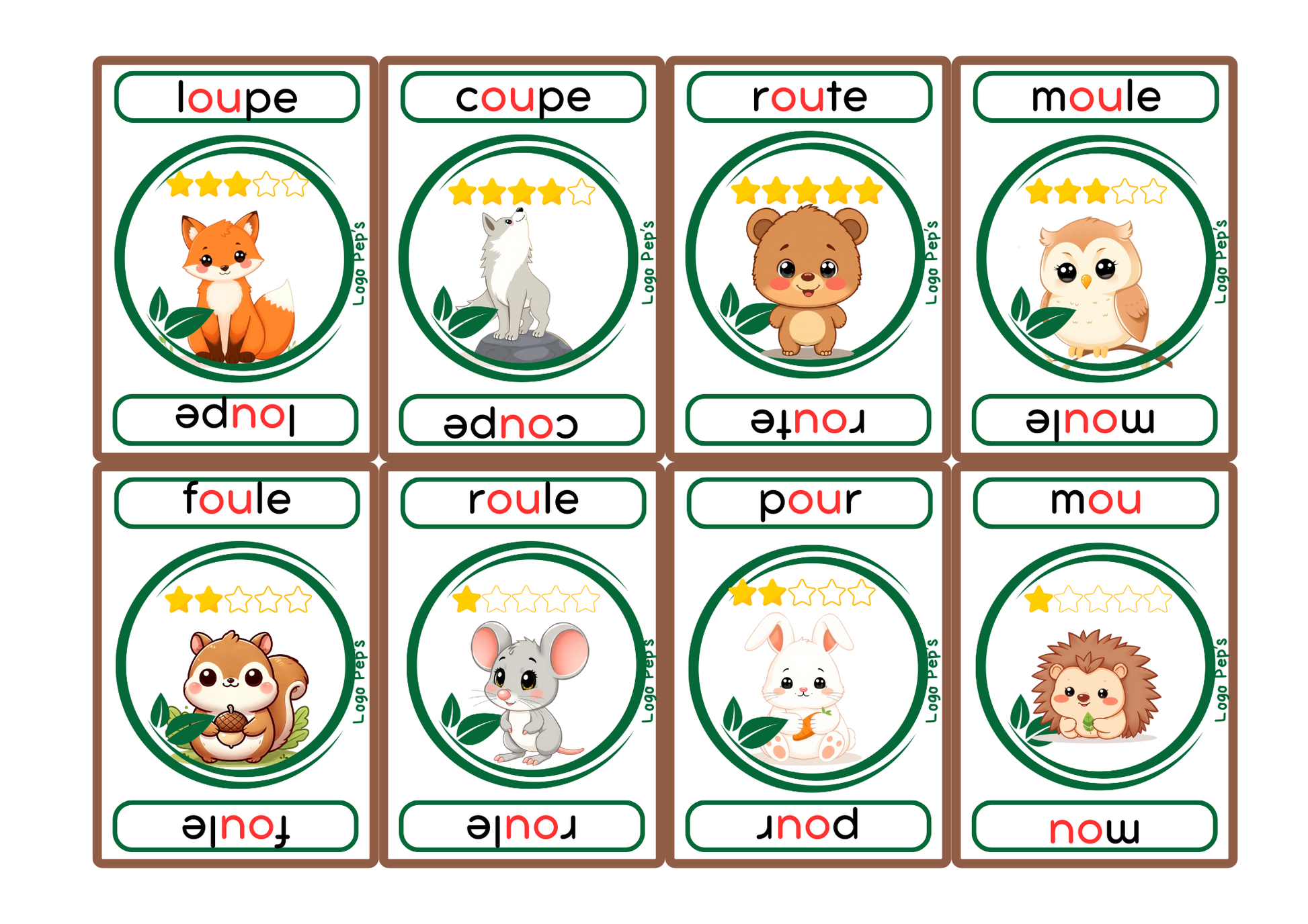Avec cette bataille de 50 cartes, les enfants lisent, comparent et automatisent la lecture de mots contenant OU (loup, poule, bouche, roue, souris…).