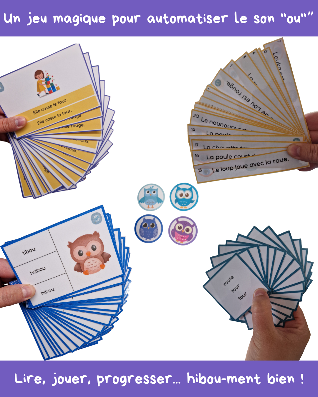 Le jeu des hiboux est un support ludique conçu pour travailler le son « OU » à travers des activités variées de compréhension, de lecture, d’écriture et de discrimination visuelle, le tout dans une ambiance immersive et motivante.