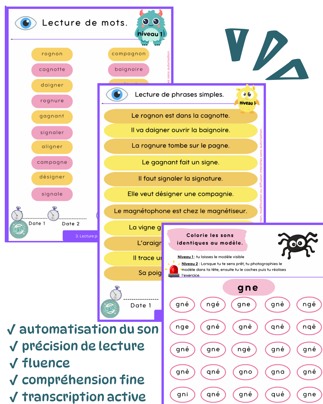 ✨ Les autres fichiers Lecture en vue pour travailler les sons de manière ciblée et progressive.