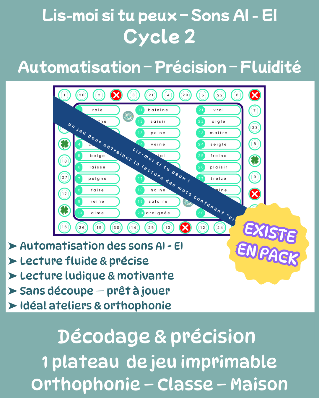 Un jeu de lecture ludique, stratégique et ultra-ciblé pour automatiser la lecture des mots contenant AI / EI tout en s’amusant !