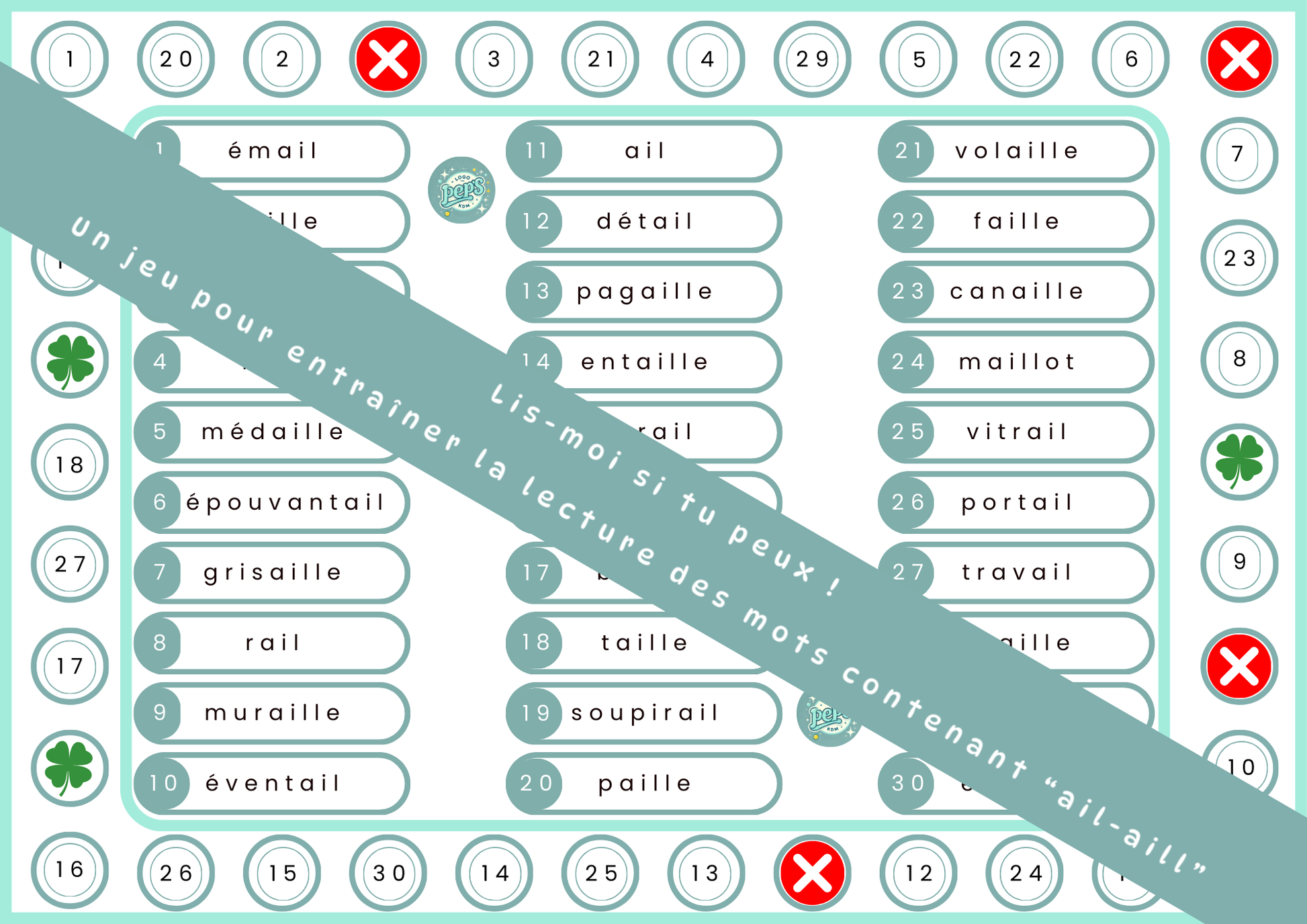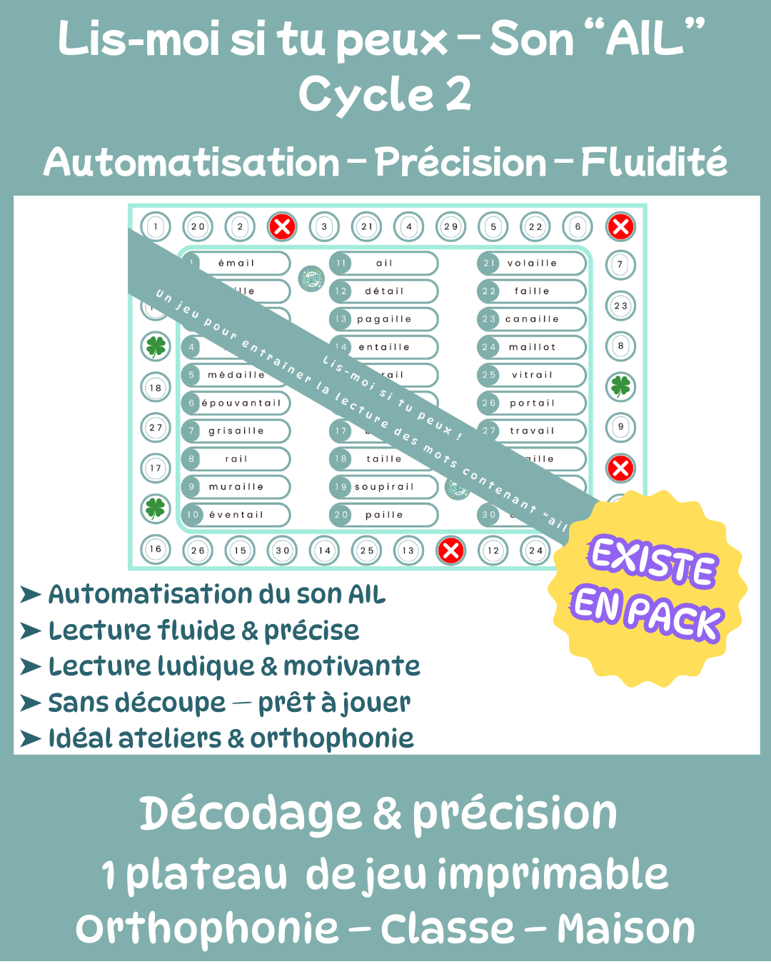 Un jeu de lecture ludique, stratégique et ultra-ciblé pour automatiser la lecture des mots contenant AIL / AILLE tout en s’amusant !