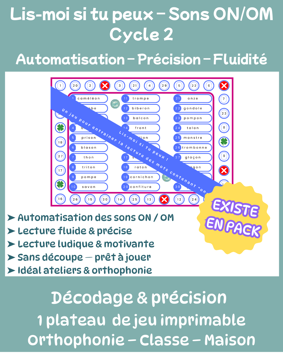 Un jeu de lecture ludique, stratégique et ultra-ciblé pour automatiser la lecture des mots contenant ON / OM tout en s'amusant !