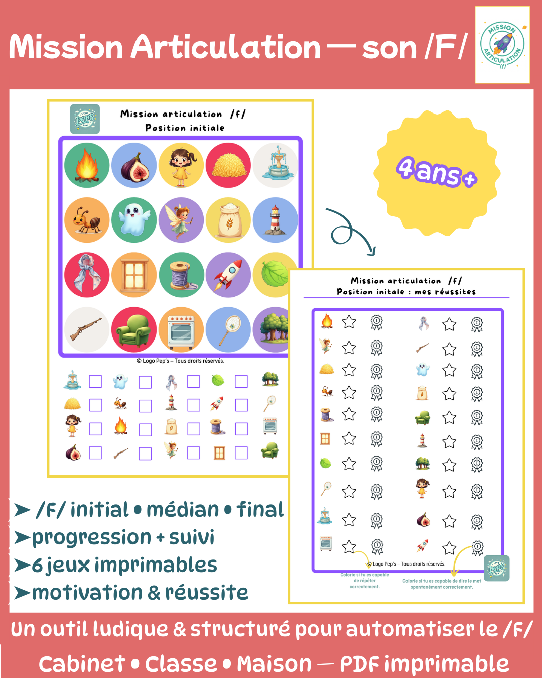 Un outil ludique et structuré pour accompagner les enfants dans l’automatisation du son /f/ à l’oral, dans un cadre progressif et motivant.