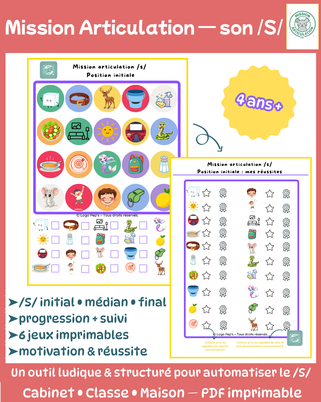 Un outil ludique et structuré pour accompagner les enfants dans l’automatisation du son /s/ à l’oral, dans un cadre progressif et motivant.