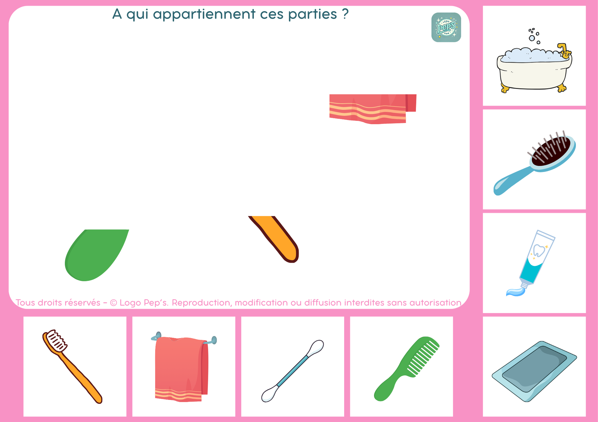 Développer et organiser le vocabulaire lié à la salle de bain, tout en renforçant :