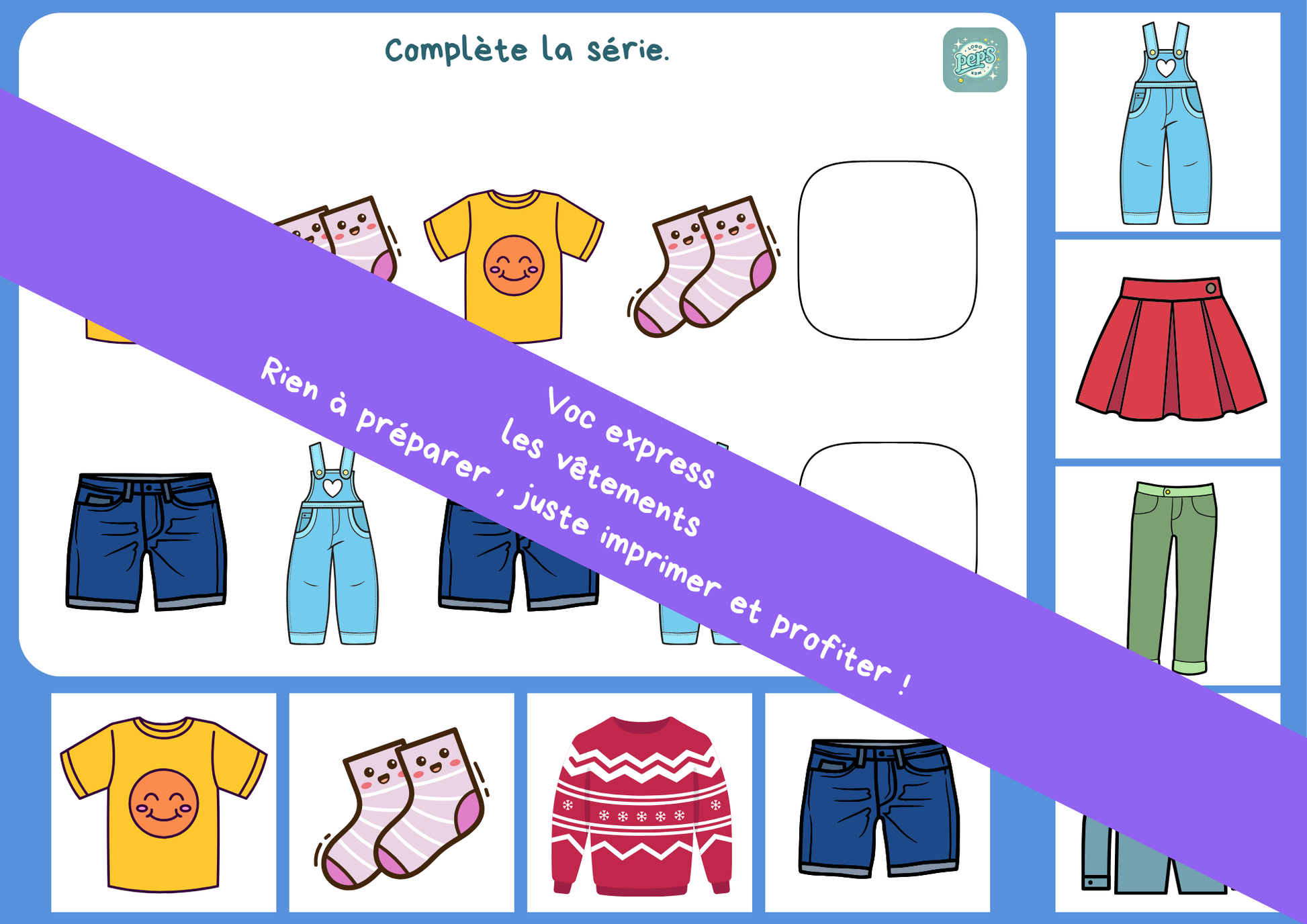 Voc Express – Les vêtements est un support ludique et sans préparation pour enrichir le vocabulaire et stimuler l’expression orale autour d’un thème familier et concret : les habits et accessoires !